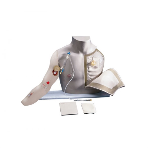 - Chester Chest is a complete unit consisting of a life-sized torso with neck and chin, detachable right arm, outer tissue flap, three difficult accessing inserts, an actual implanted port, CVC, PICC, openings for attachment of a sub clavian or external jugular catheter, ‘blood’ reservoir bags, tubing, talc baby powder and user’s information.