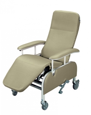The Tilt-in-Space feature allows for improved resident positioning, increased comfort and pressure relief. Independent leg rest is easily activated by the caregiver from side of chair to provide leg elevation for increased resident comfort. Self storing, height adjustable drop arm is simple for the caregiver to activate and enables a safer, easier lateral transfer for the caregiver and resident. Padded armrests provide a soft surface for added resident comfort. Directional wheel lock on right rear caster reduces “crabbing” of recliner and enables the chair to be moved down hallways with less effort.